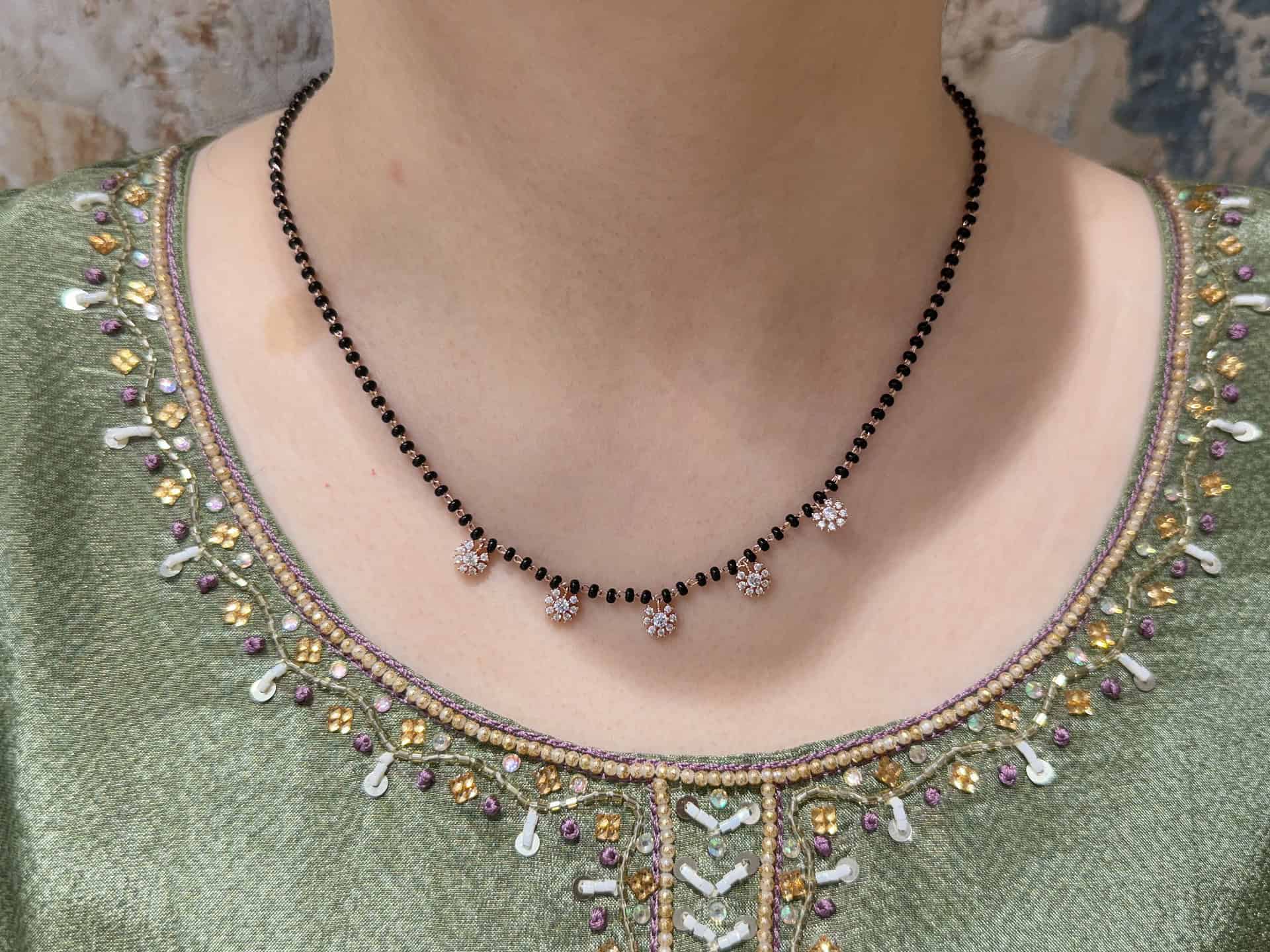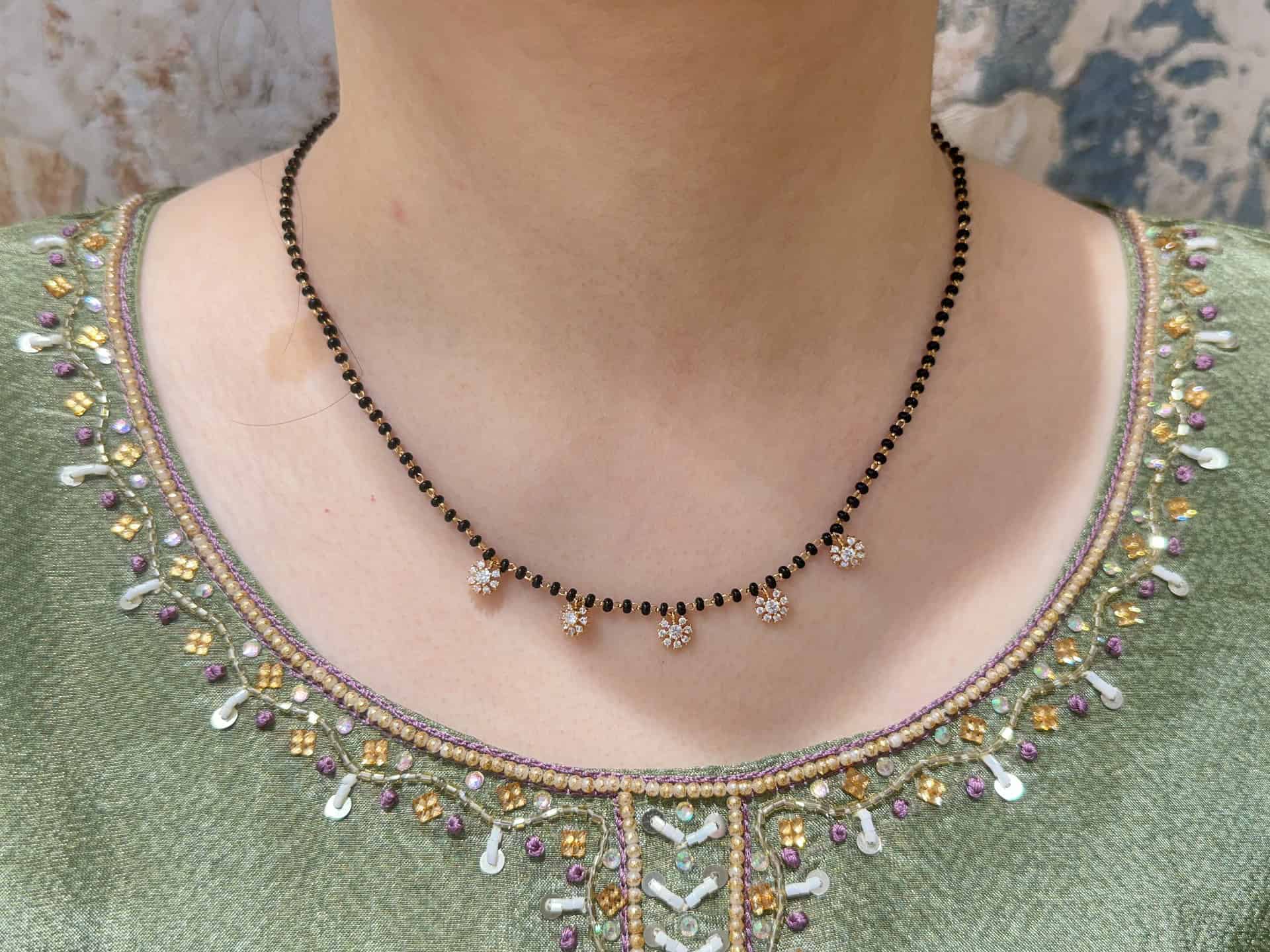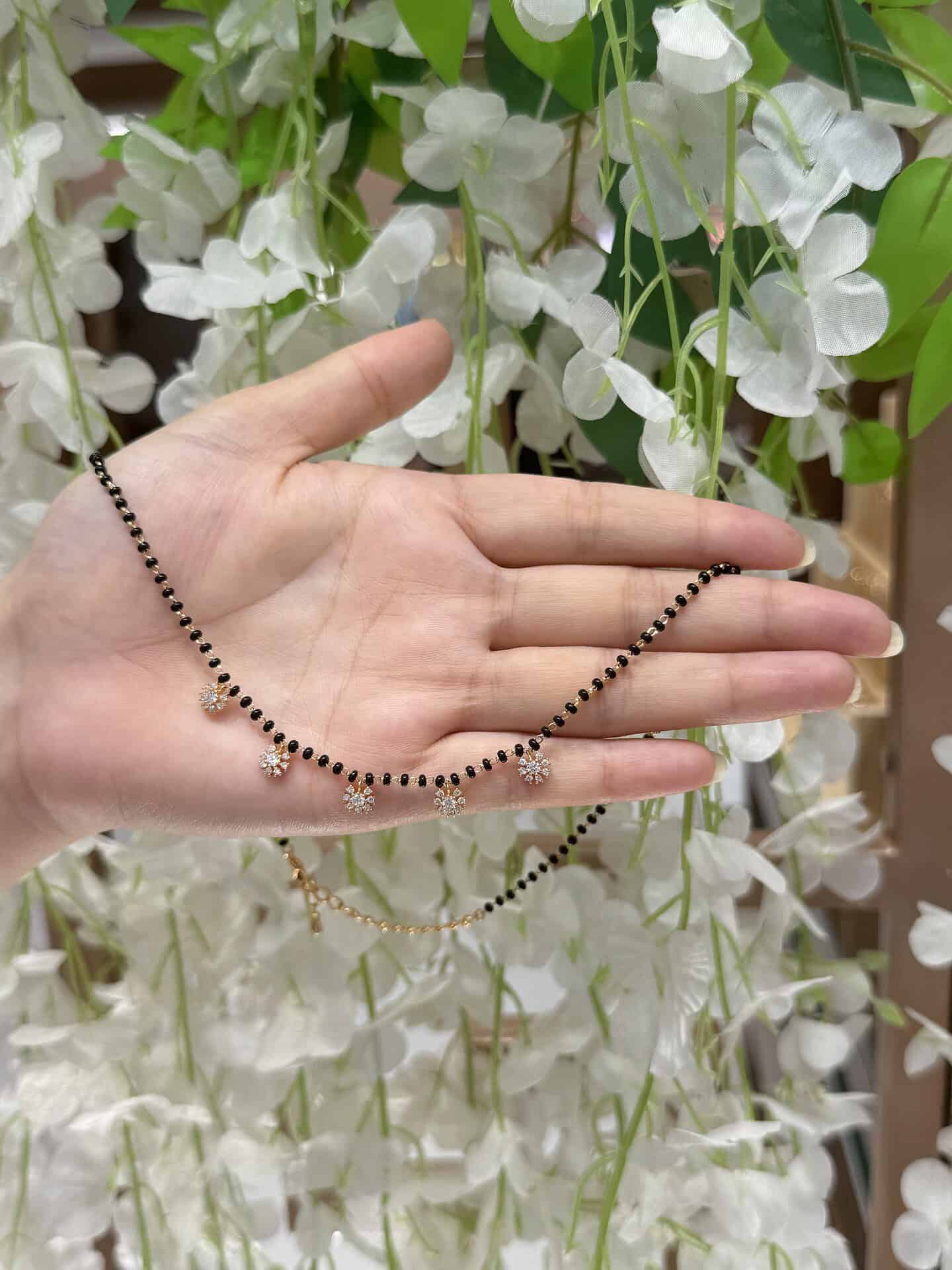 Be the first to review “Handcrafted 18-carat gold-plated mangalsutra hanging design flowers”